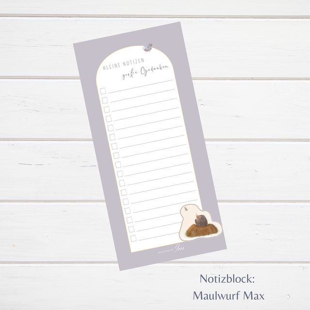 1 x Notizblock: handliches Langformat (9,8 x 21 cm), oben geleimt, mit stabiler Rückpappe und Magnet